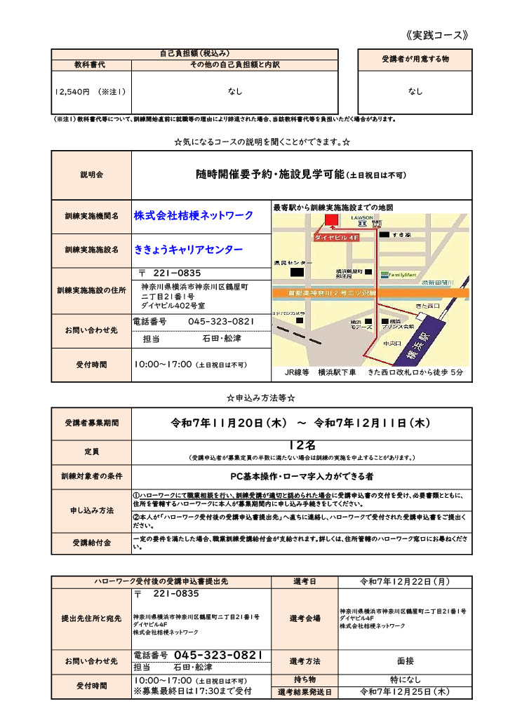新着情報2025.11.20【1月開講(実践コース)】募集中!NEW